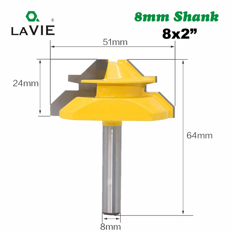 Концевая фреза LA VIE MC02005, 1 шт., хвостовик 8 мм, 45 градусов, твердосплавный резак среднего замка, торцевая насадка 34 дюйма, для деревообработки