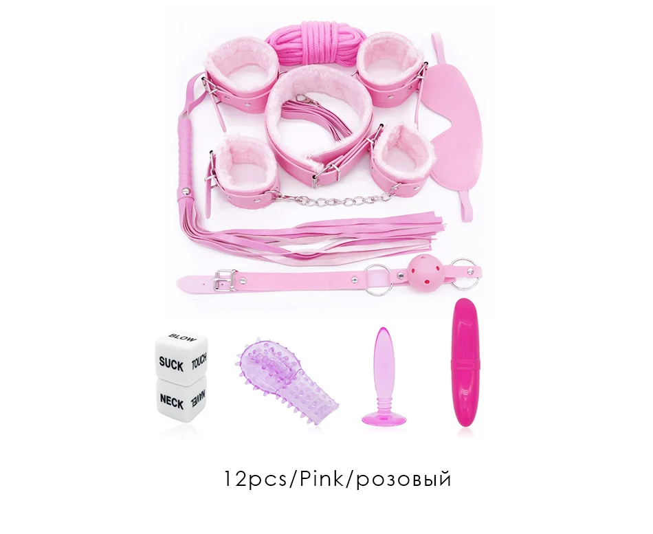 ДомаЖенский Фетиш бондаж12 шт./компл. наручники, наручники, Анальная пробка, вибратор, фаллоимитатор, эротическая игрушка для взрослых, секс-игрушки