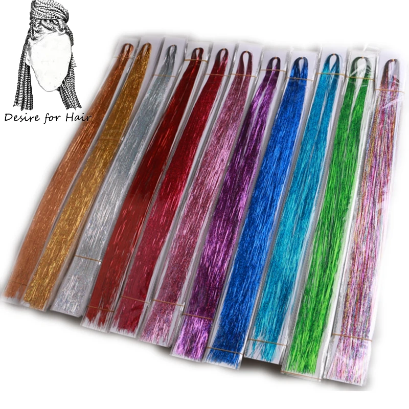 Desire для волос сверкающий bling 22 дюйма синтетические волосы мишура для вечерние и ночных клубов; Цвет золотистый, серебристый переливаются разными цветами