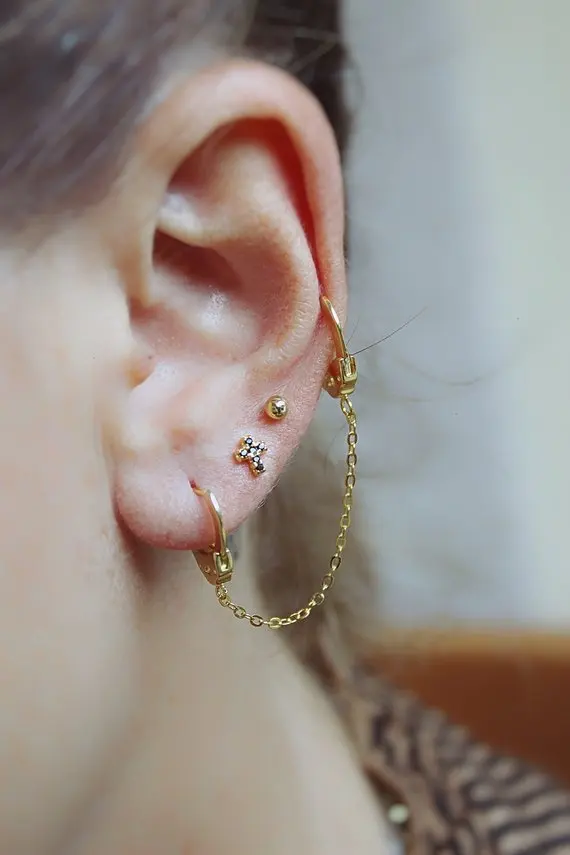 Новинка, кольца для пирсинга с двумя отверстиями для ушей, серьги, ...