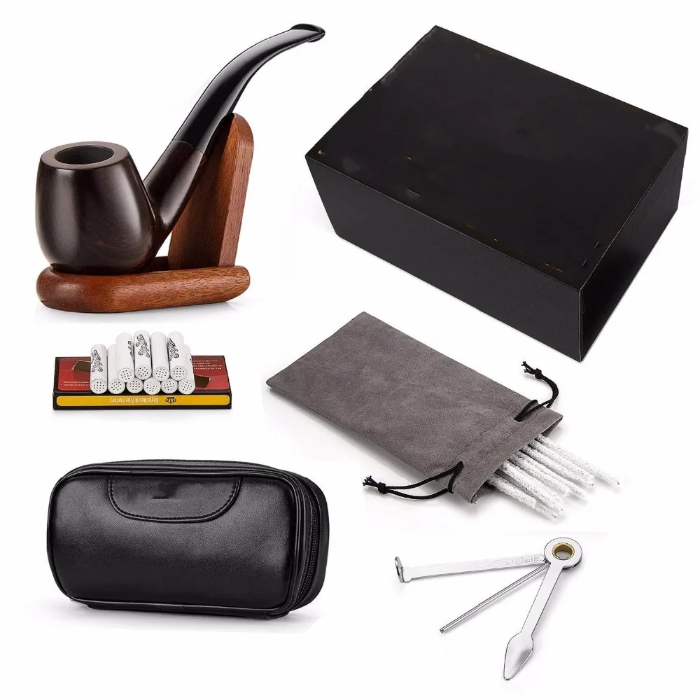 Курительная трубка, черного цвета, с аксессуарами для трубки (деревянная), 1 комплект