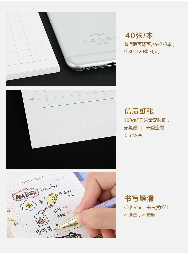 Название: никогда не спиральная записная книжка наполнителя бумаги А6 планировщик еженедельник план Сетка точка линия вставки страниц Дневник Книга внутреннее ядро 40 листов Канцтовары