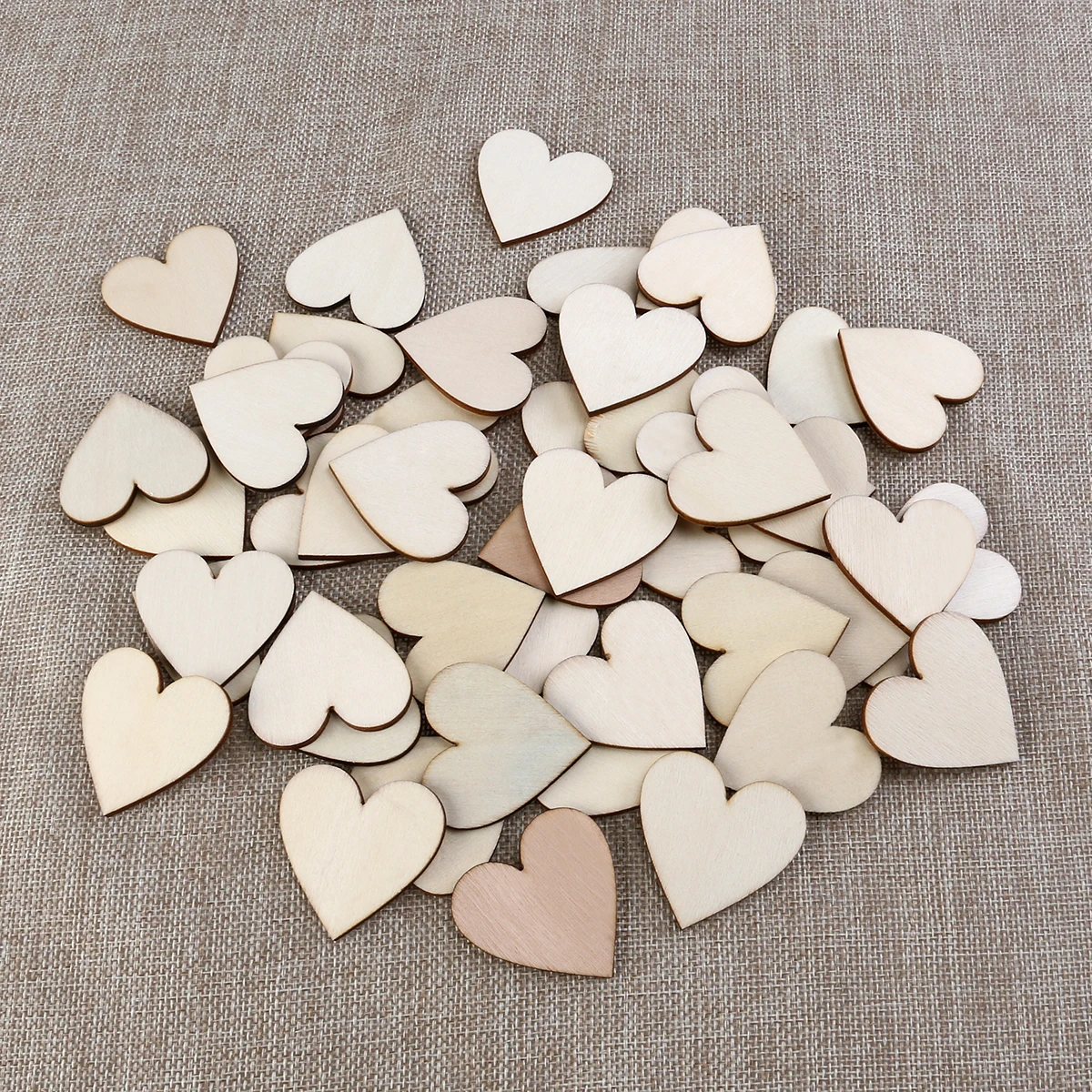 50 шт. 40 мм пустые деревянные кусочки сердца диски украшения вырезы для вечерние свадьбы декорация рукоделие хобби (дерево цвет)