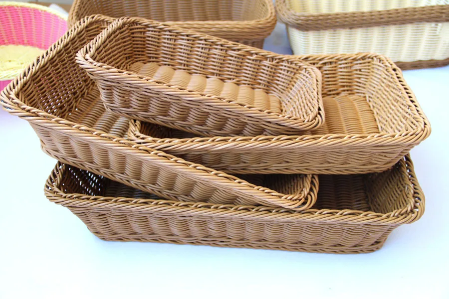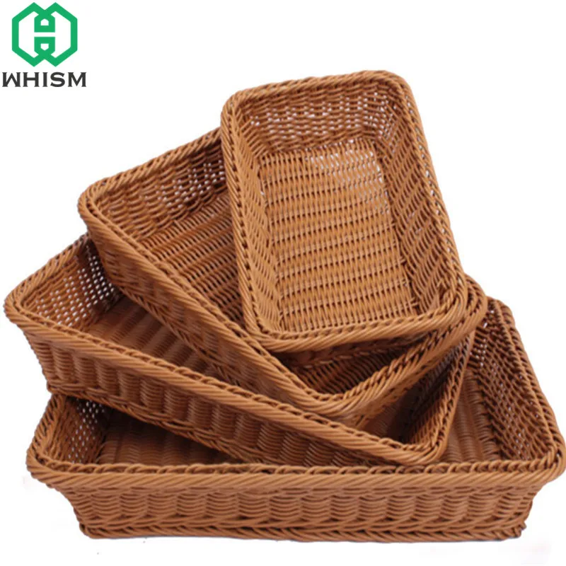 WHISM прямоугольная корзина для хлеба, Ротанговые корзины для хранения, плетеный поднос для чая, Плетеный контейнер для фруктов и овощей, органайзер для закусок и еды