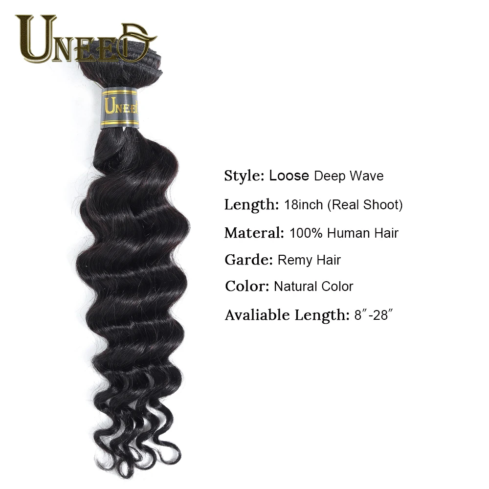 Uneed Волосы Бразильские свободные глубокие волнистые пучки с закры...