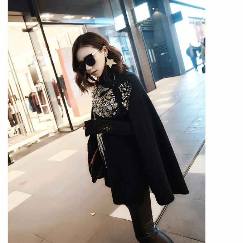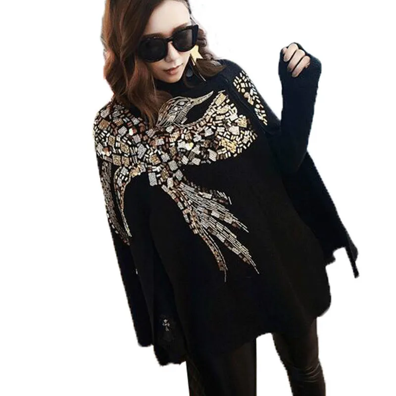 Женская накидка с птицами и блестками, накидка с вышивкой, накидка с рукавом летучая мышь, свитер с бисером, пончо, вязаный пуловер с узором, шаль 2020