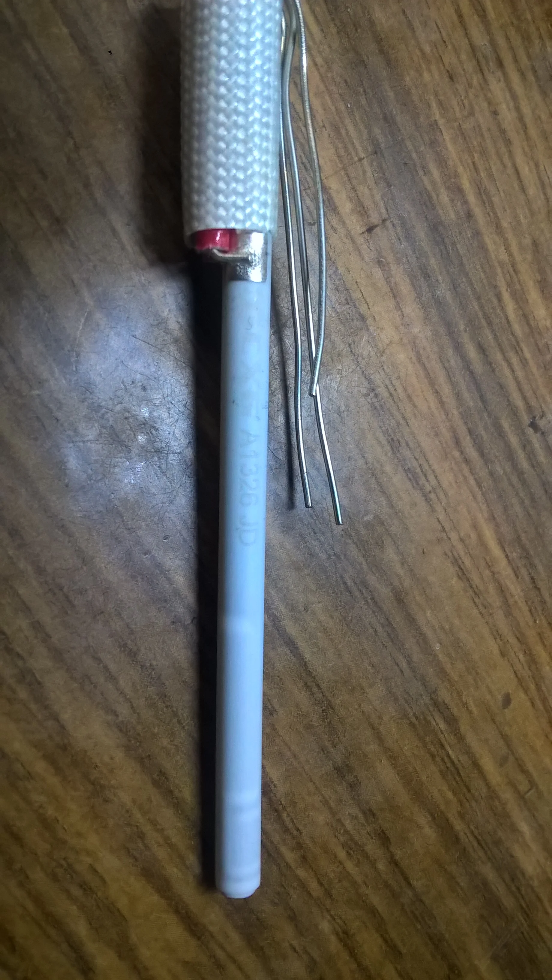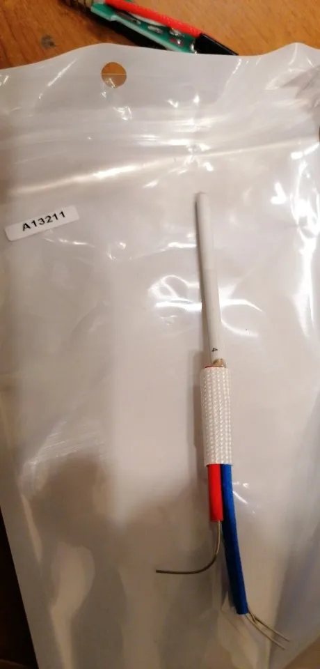 Всё хорошо. Прислали целым. Прозванивается. Брал на 110Вт 220В А13211. 127 Ом тэн и 52 Ом термопара. В работе не проверял. Покупал как запасной. Маркировки на самом нагреватели нет, но по внешнему виду такой же, контакты и изоляция такие же, но сама керамика длиной 59,3 мм, на 1,3 мм короче того что стоит в паяльнике к которому покупалось, но там нагреватель А1319 (110В 90Вт).