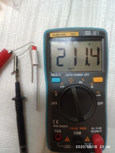 отлично, быстро, все работает, 220 В, 206 ом сопротивление нагревателя, 50 ом сопротивление термопары, 3.8 мм диаметр,