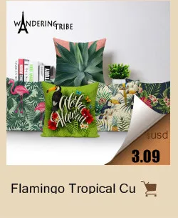Тропический чехол для подушки с фламинго, льняная наволочка с зелен...