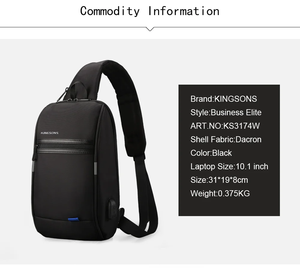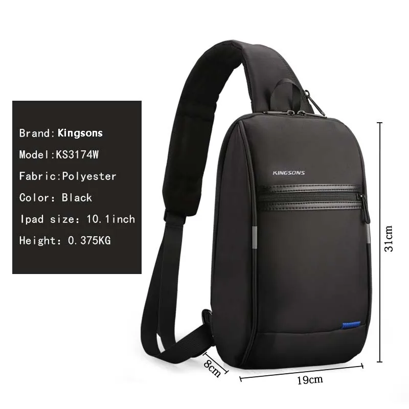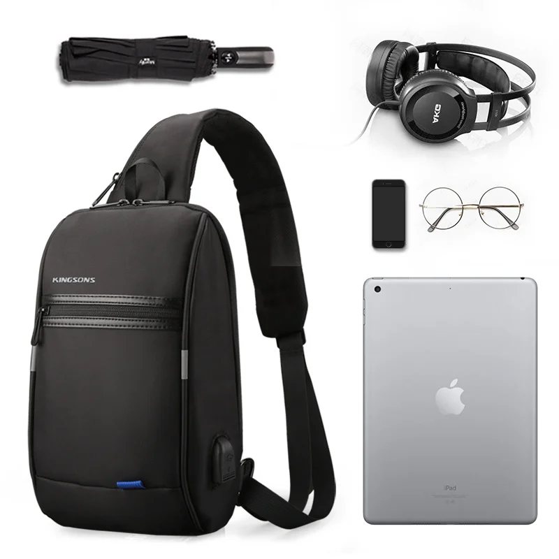 Рюкзак Kingsons мужской водонепроницаемый, маленький ранец на одно плечо для ноутбука 10,1 дюйма с USB-разъемом