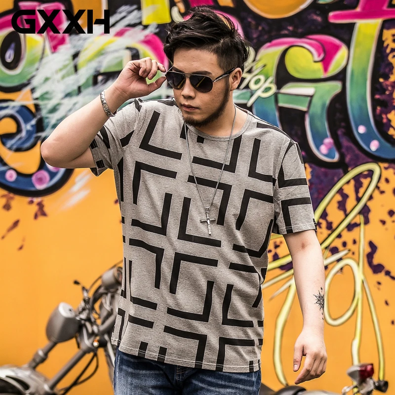 GXXH Летняя мужская футболка с коротким рукавом, размер d, свободная модная повседневная футболка с принтом, мужские топы, футболки размера плюс, размер XXL-7xl, Мужская футболка