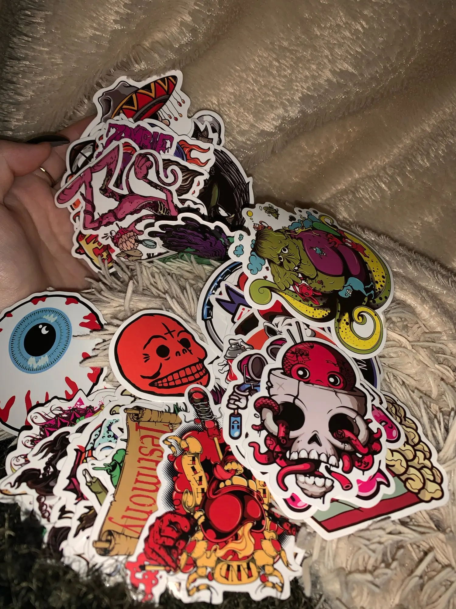Самые классные стикеры которые у меня были. На ощуп приятные, не бумага. Цвета яркие 10/10 Пришли быстро в защитной упаковке