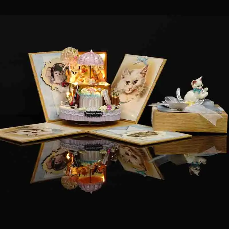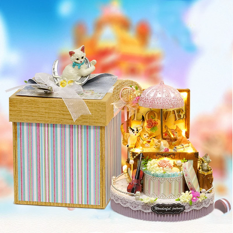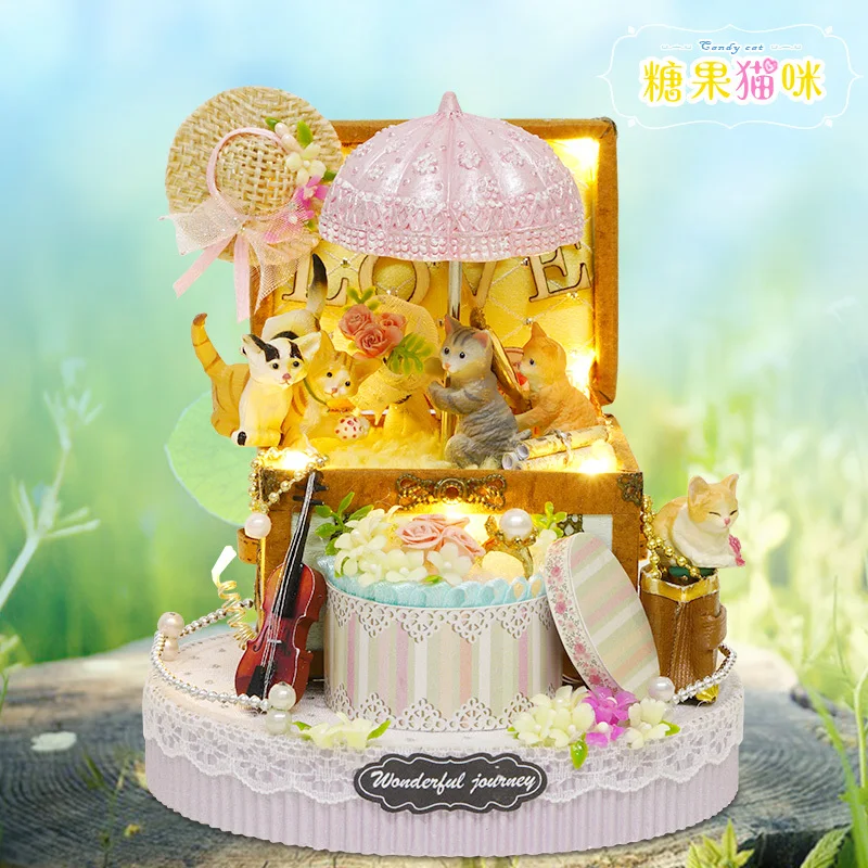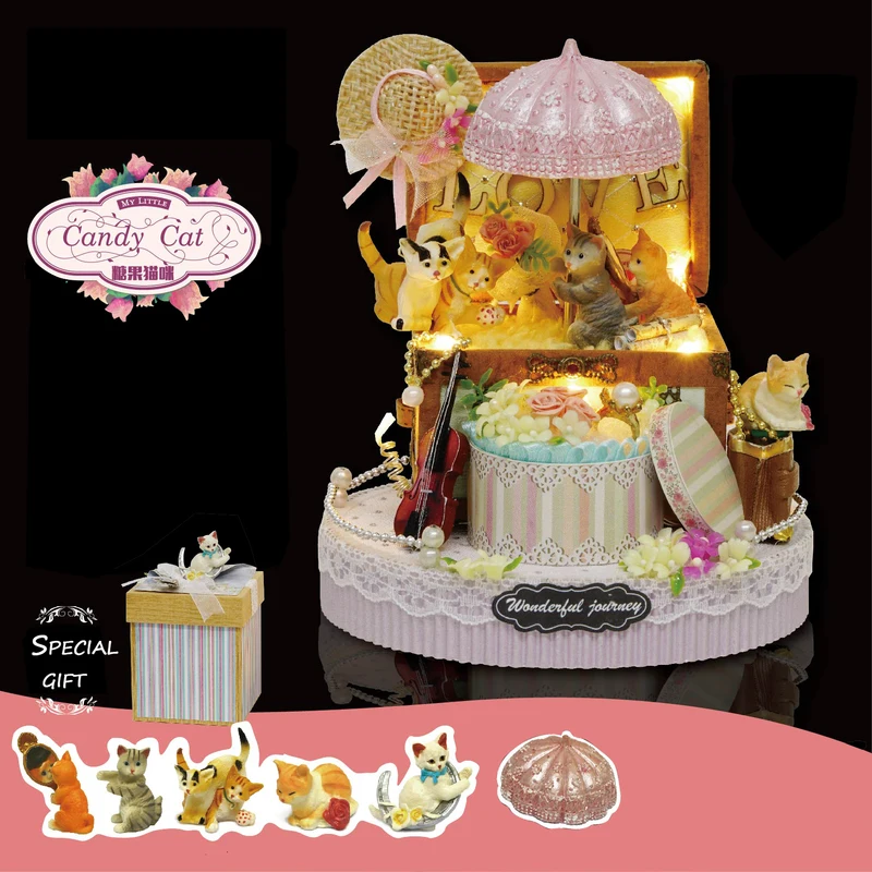 Миниатюрный Кукольный дом, деревянная модель 3D, миниатюрная мебель ручной работы, милый кукольный домик, игрушки для детей, карамельный Кот