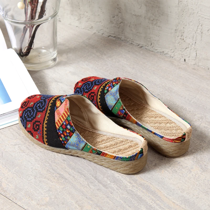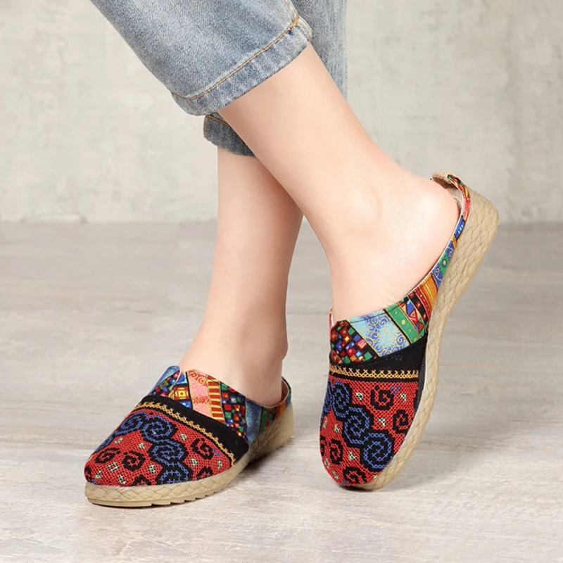 Женские холщовые шлепанцы Veowalk, повседневные шлепанцы в стиле Харадзюку с цветочной вышивкой, на плоской подошве