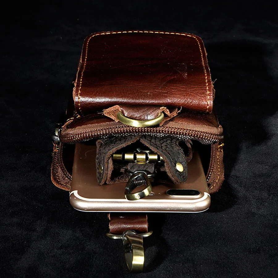 Сумка поясная мужская из натуральной кожи, с крючком, для мобильного телефона, сигареты, ключей, монет