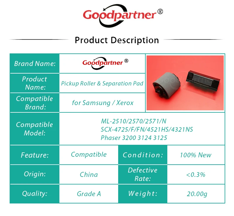 1 SET= Pickup Roller*1 + Separation Pad*1