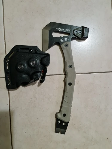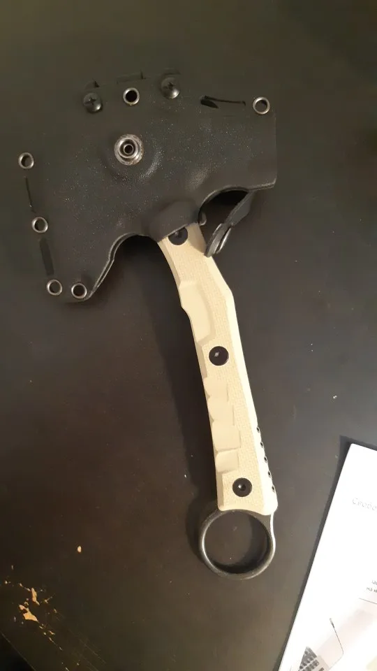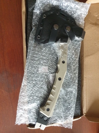 На самом деле, отличный продукт. Гораздо лучше, чем ожидалось. Scabbarb поставляется с приложением tek-lok, что стало отличным сюрпризом. Покупаю секунду. Это очень хороший топор по цене.