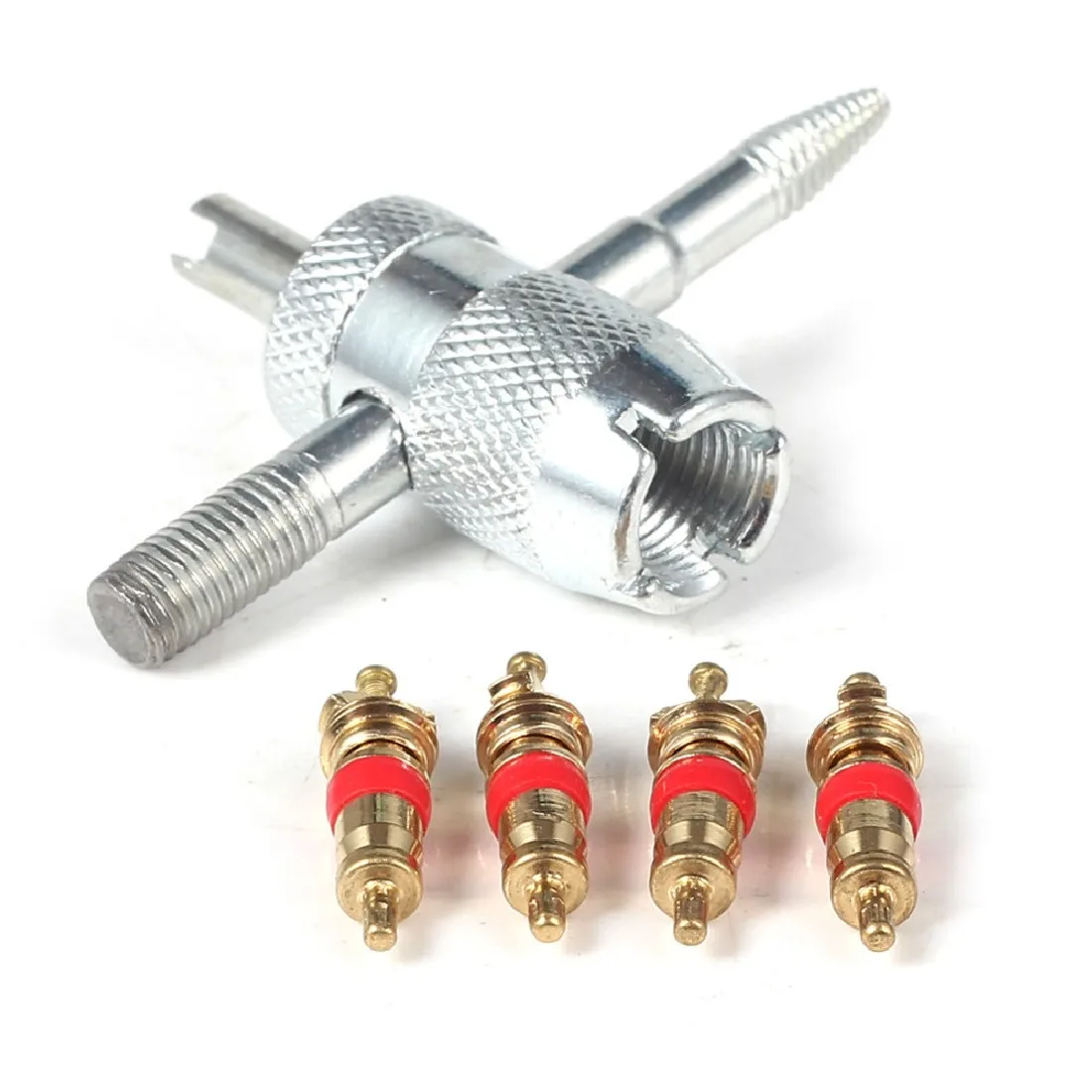 1. Новый товар и высокое качество.2. Этот 4-полосная сердцевина клапана шины подходит для автомобилей, мотоциклов.3. Легкий и простой в использовании.4. Удаляет сердечники клапана.5. Повторное нажатие нитей внутри и снаружи.6. Внутренние стержни клапана.7. Инструмент ремонта вентиля Материал: медь и цинк.Примечание: