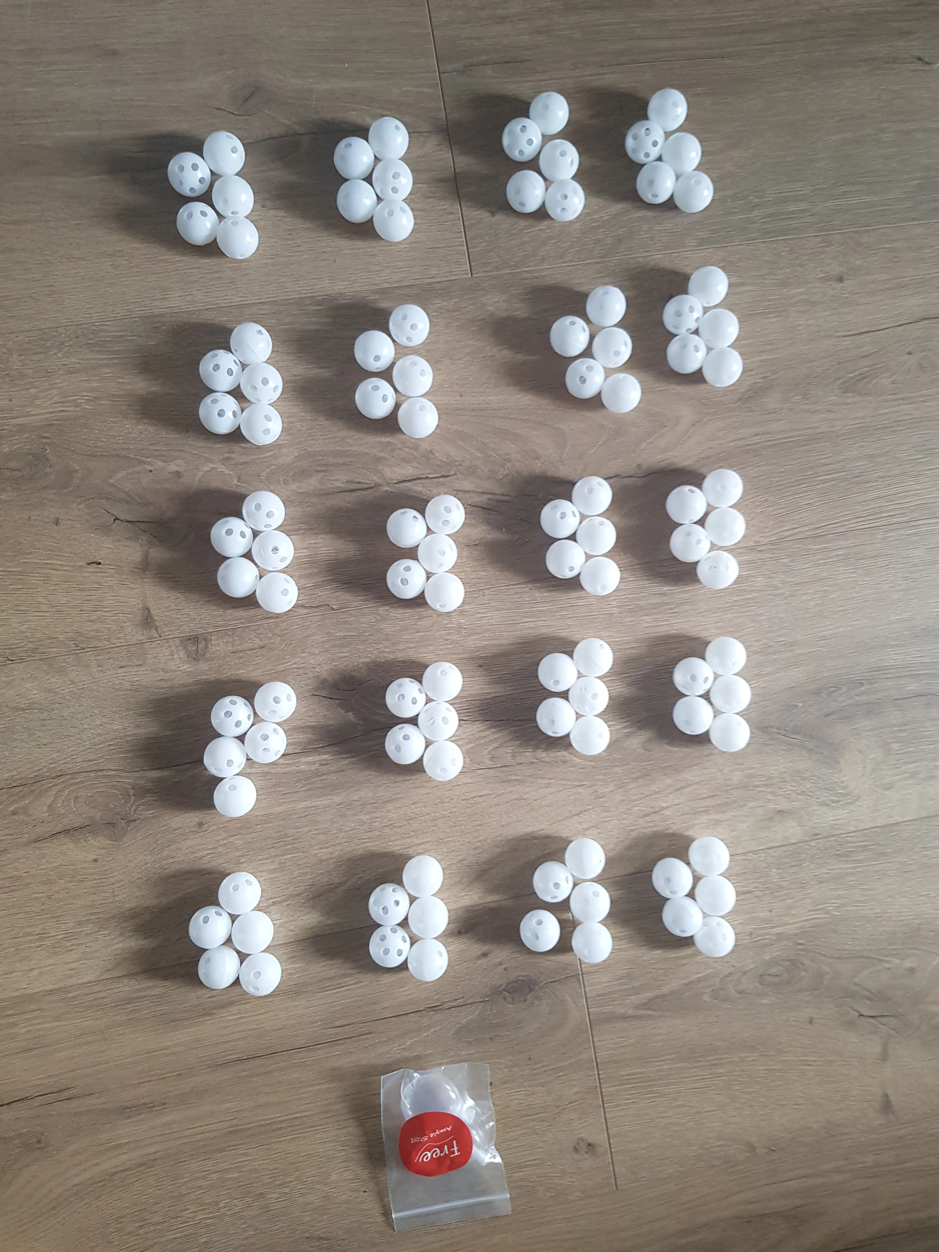 классные гремелки. не пересчитывала. но в подарок положили плоскую гремелку (я кстати металась между круглыми и плоскими) и пищалку. меня это очень порадовало! так как их тоже планировала заказывать, теперь посмотрела на них вживую))) точно буду брать еще))) для игрушек и погремушек отличные гремелки и пищалки)