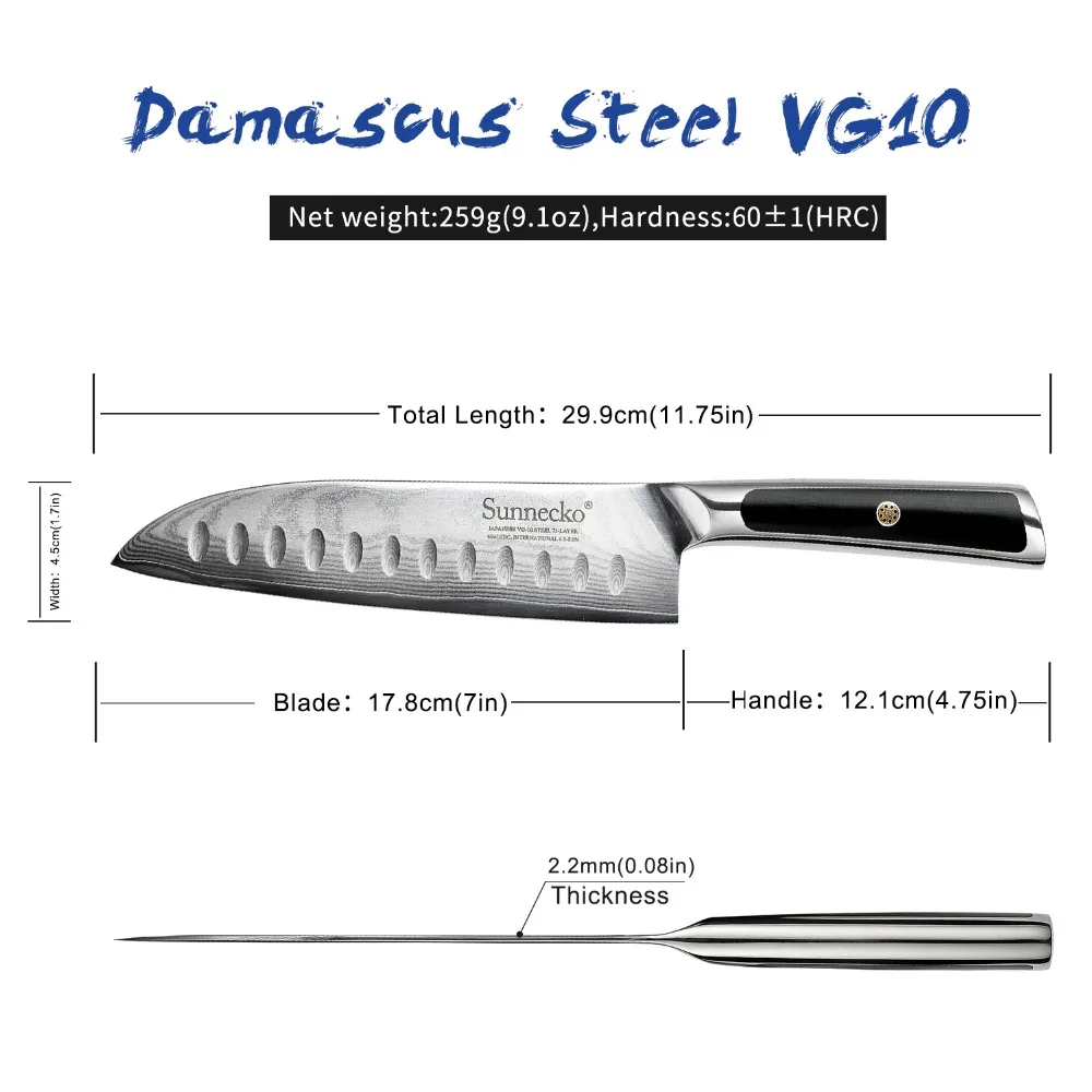 SUNNECKO Премиум 7 дюймов нож Santoku Дамасская сталь японский VG10 ядро лезвие кухонные ножи G10 Ручка острый нож шеф-повара мяса