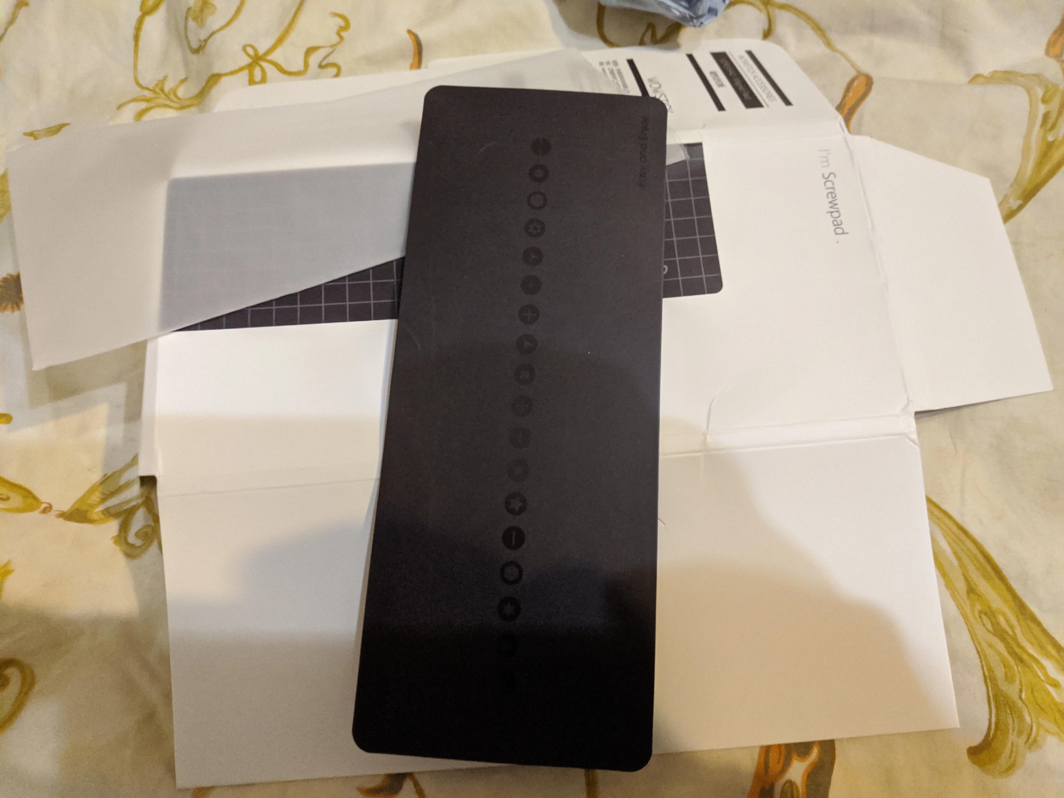 Небольшой коврик, очень удобен при разборке телефонов, ноутбуков и тому подобной техники, чтобы не потерять винтики -- сразу кладёшь на него, если не делать резких движений, остаются на месте :)