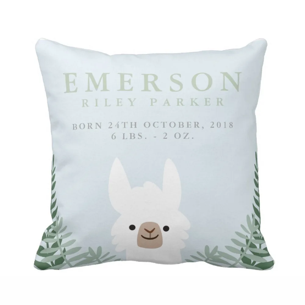 Персонализированный милый чехол для подушки Llama с оповещением о рождении, детский чехол для подушки из мягкого полиэстера, домашний декоративный чехол для дивана