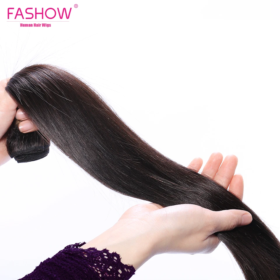 Пряди прямых волос Fashow 30, 32, 34, 36, 40, дюймовые индийские волосы, 100% натуральные пряди человеческих волос, двойные удлинители волос Реми