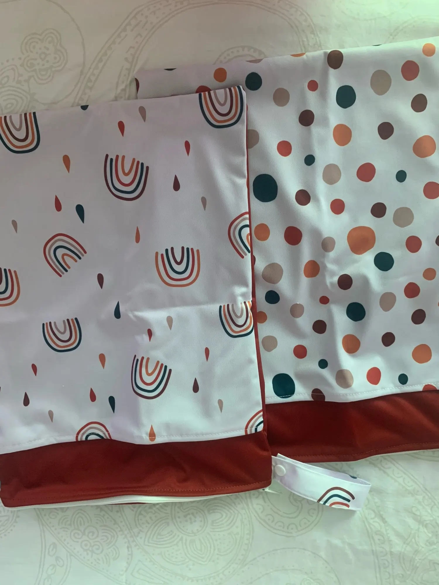 Очень качественные сумки для подгузников, два кармана, один не промокаемый. Есть ручка чтобы повестить на руку или на коляску