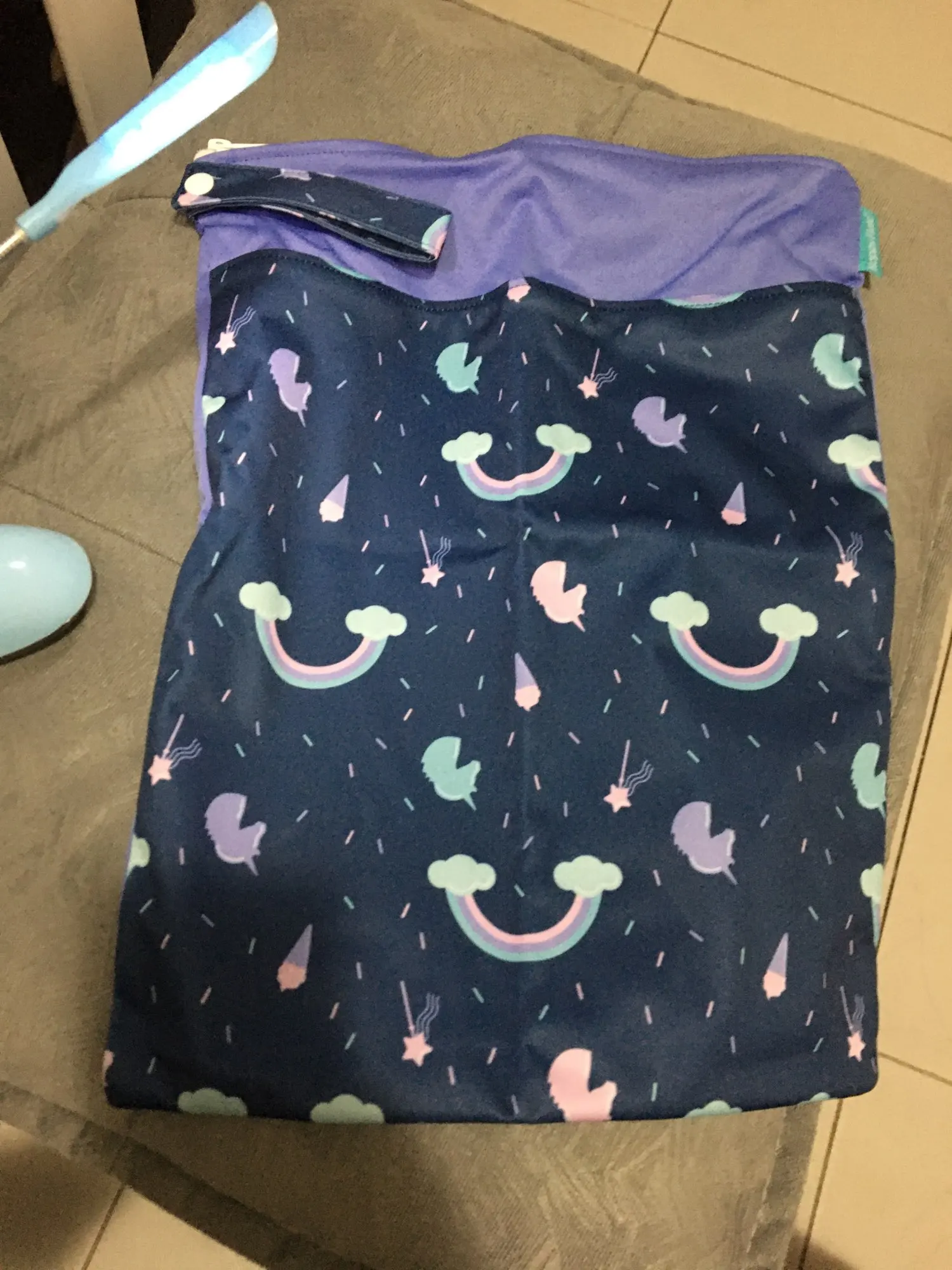 A entrega do produto foi bastante rápida para o Brasil, chegou em menos de 1 mês. Amei a qualidade do produto, e me surpreendi com o tamanho. Ele é bastante grande e cabe diversas coisas dentro. Ainda não tenho como opinar sobre ele ser à prova d'água, mas creio que o produto não trará surpresas nesse sentido. A estampa é linda e condizente com a imagem no momento da compra, só achei um pouco mais clara. Uma dica é comprar esse produto e a diaper pods, é ótimo tanto para guardar as fraldas limpas e usadas quanto para levá-las em viagens. O legal é que possuem a mesma estampa.