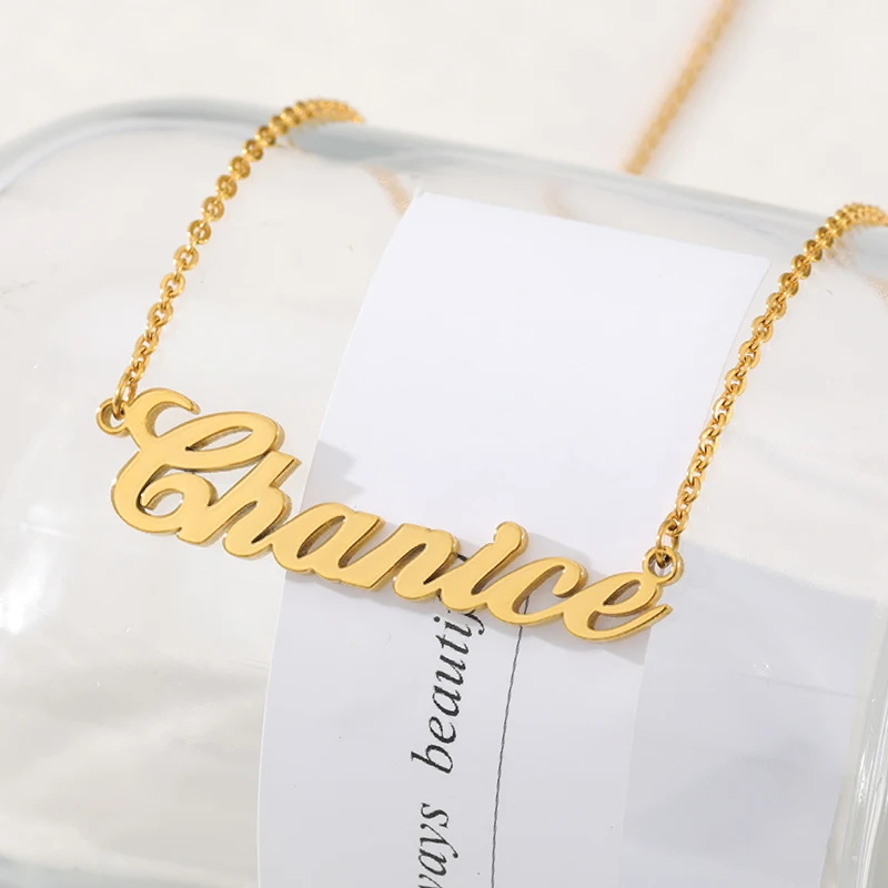 Золотая цепочка из нержавеющей стали 2021, индивидуальные ожерелья с любым шрифтом, ожерелье с именем для женщин, бижутерия с табличкой