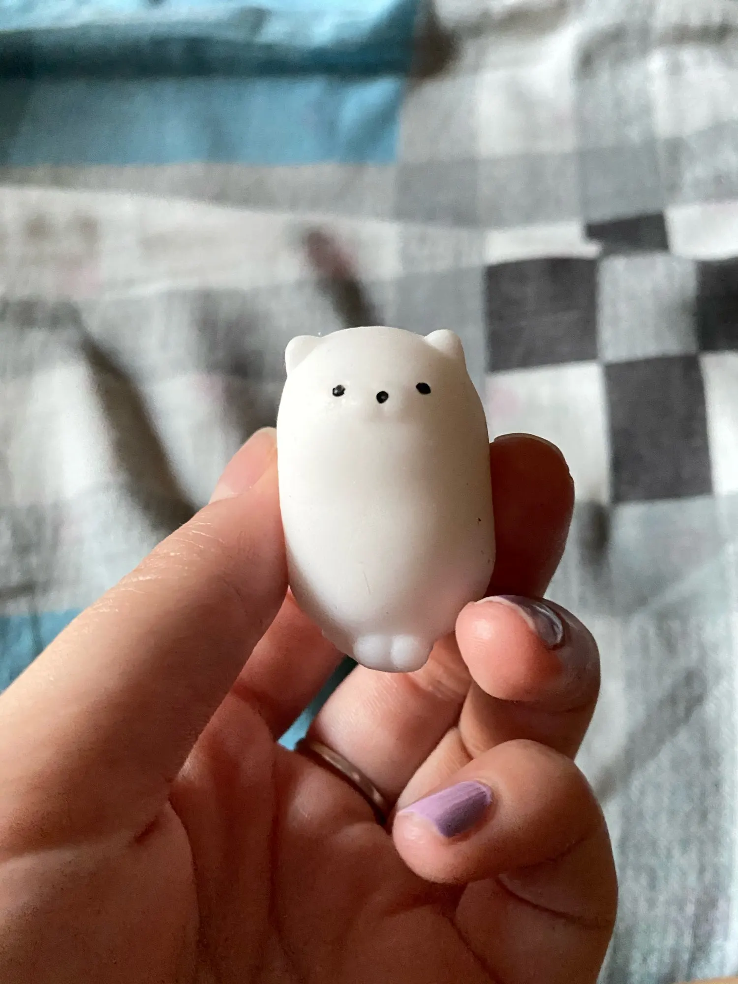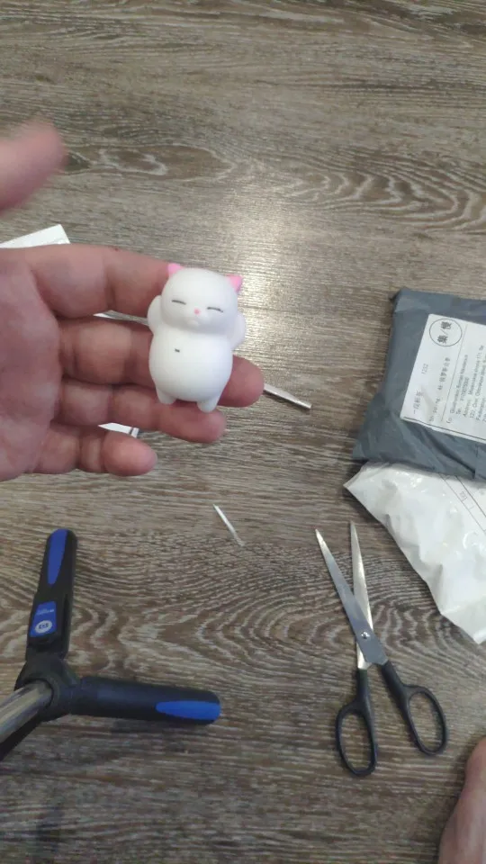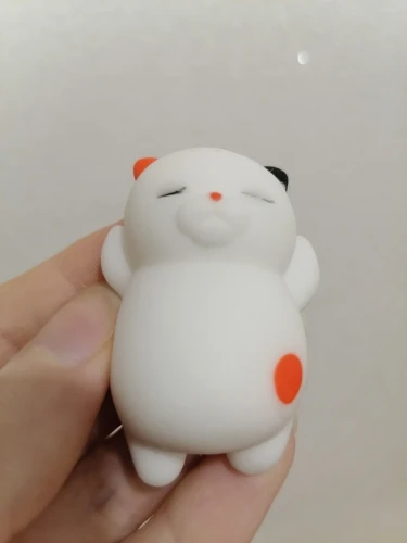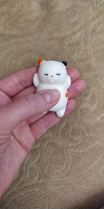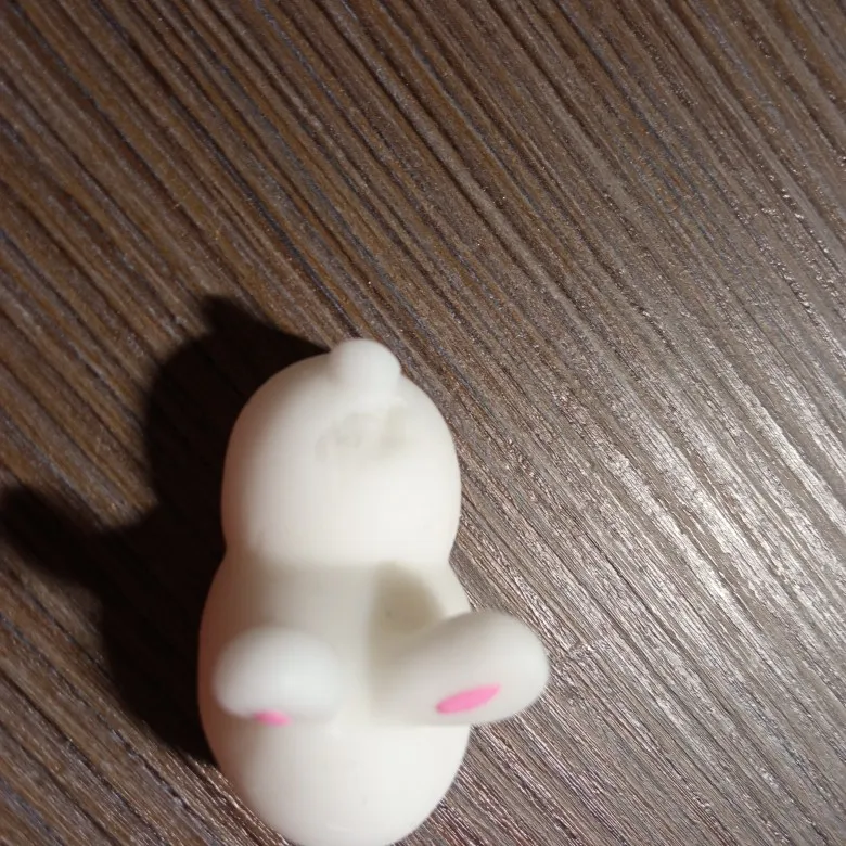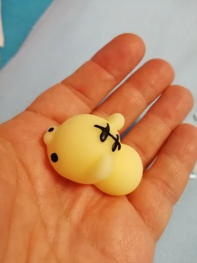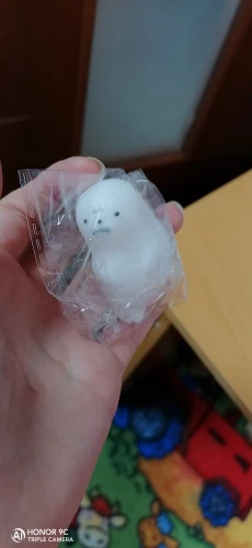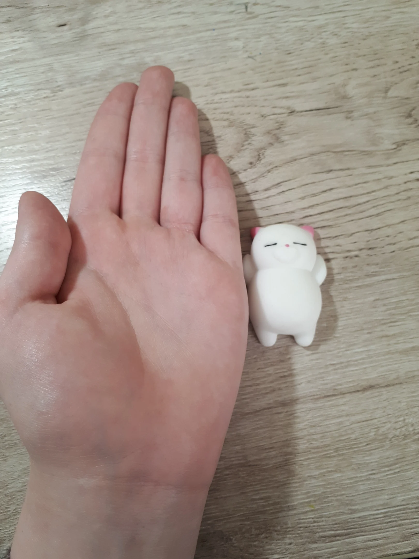 Приятный на ощупь сквиши. Глазки и нос облезли в тот же день. Доставка быстрая. Заказала ещё несколько штук.