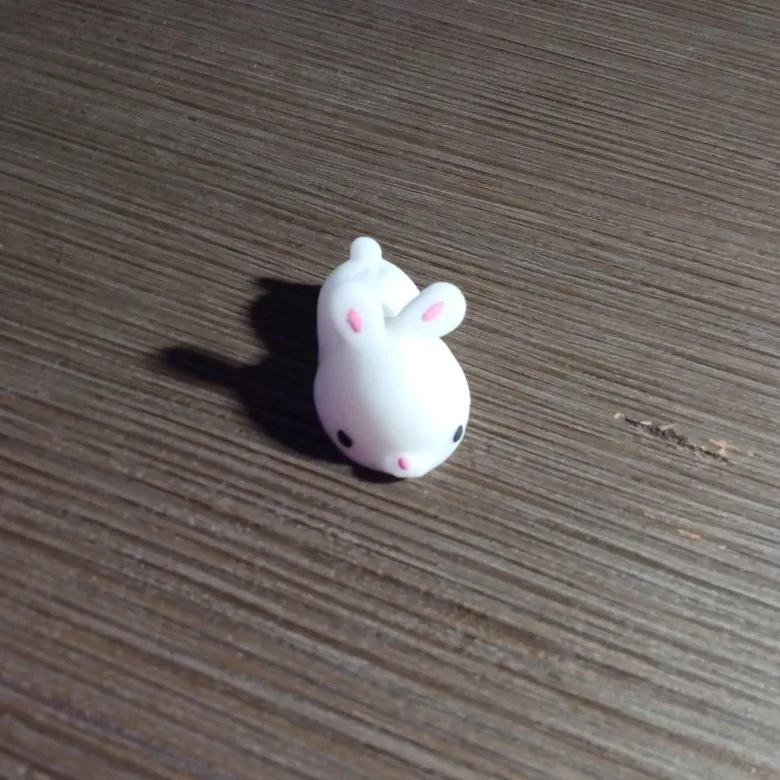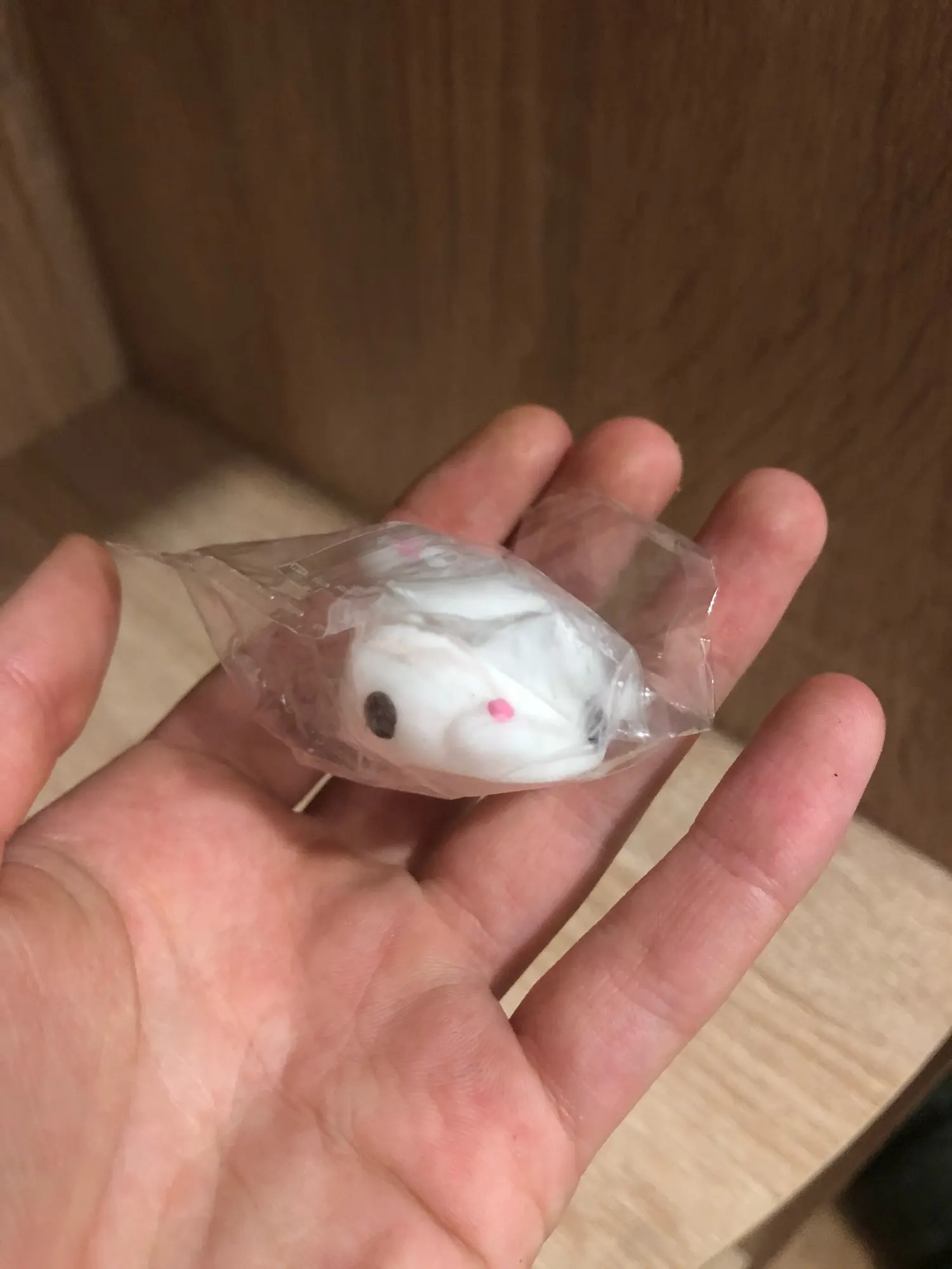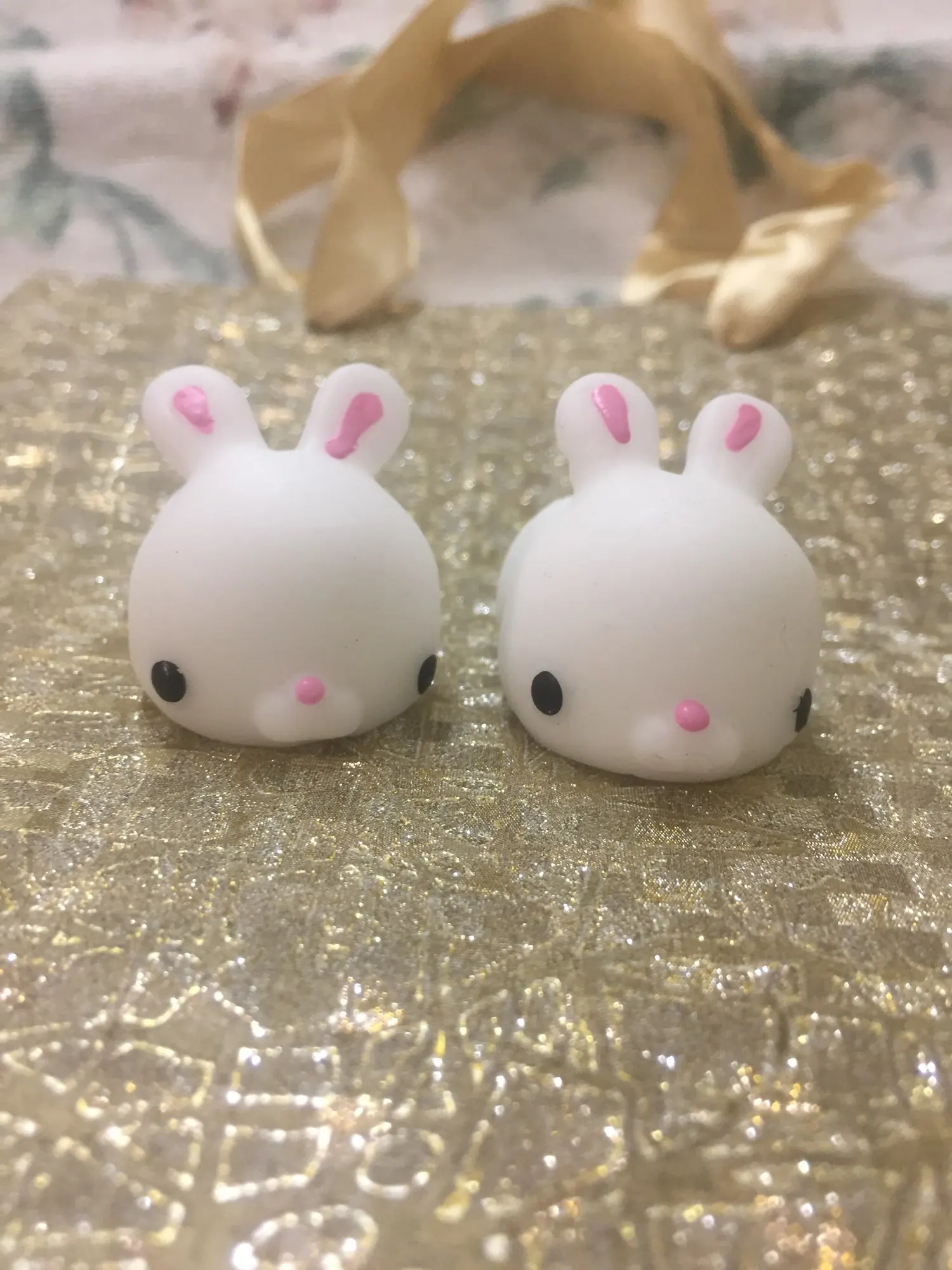 Пришли два милых зайки.У одного криво покрашено ушко, у другого кривой глаз. Уж ооочень маленькие, 3,5 сантиметра по длине)) И очень мягкие, даже жалко их мять в руке. Цепляют на себя грязь и пыль. В целом понравились