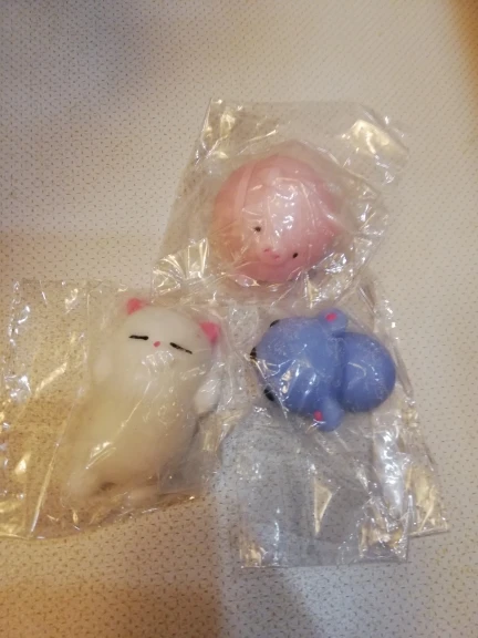 Яй, мои сжималки прибыли! Это заняло около месяца, но все в порядке. Таким образом, вот они. Некоторые покупатели из других магазинов сказали, что эти игрушки становятся липкими после мытья водой. Но на самом деле нет! Они легко собирают пыль, но их также очень легко чистить. Кроме того, у них нет запаха. И приятно на ощупь, чувствую себя желе :) мне они действительно нравятся :) спасибо!
