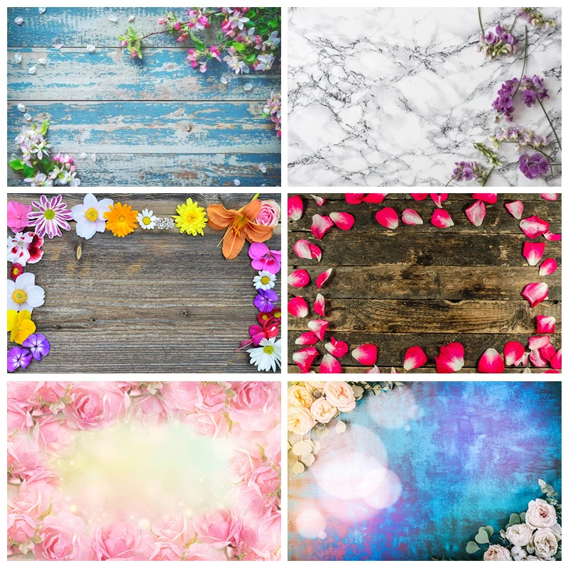 Laeacco Виниловый фон для фотографии деревянная доска цветы, лепестки любовь ребенок фигурка животного фотосессия портрет фотографический фон