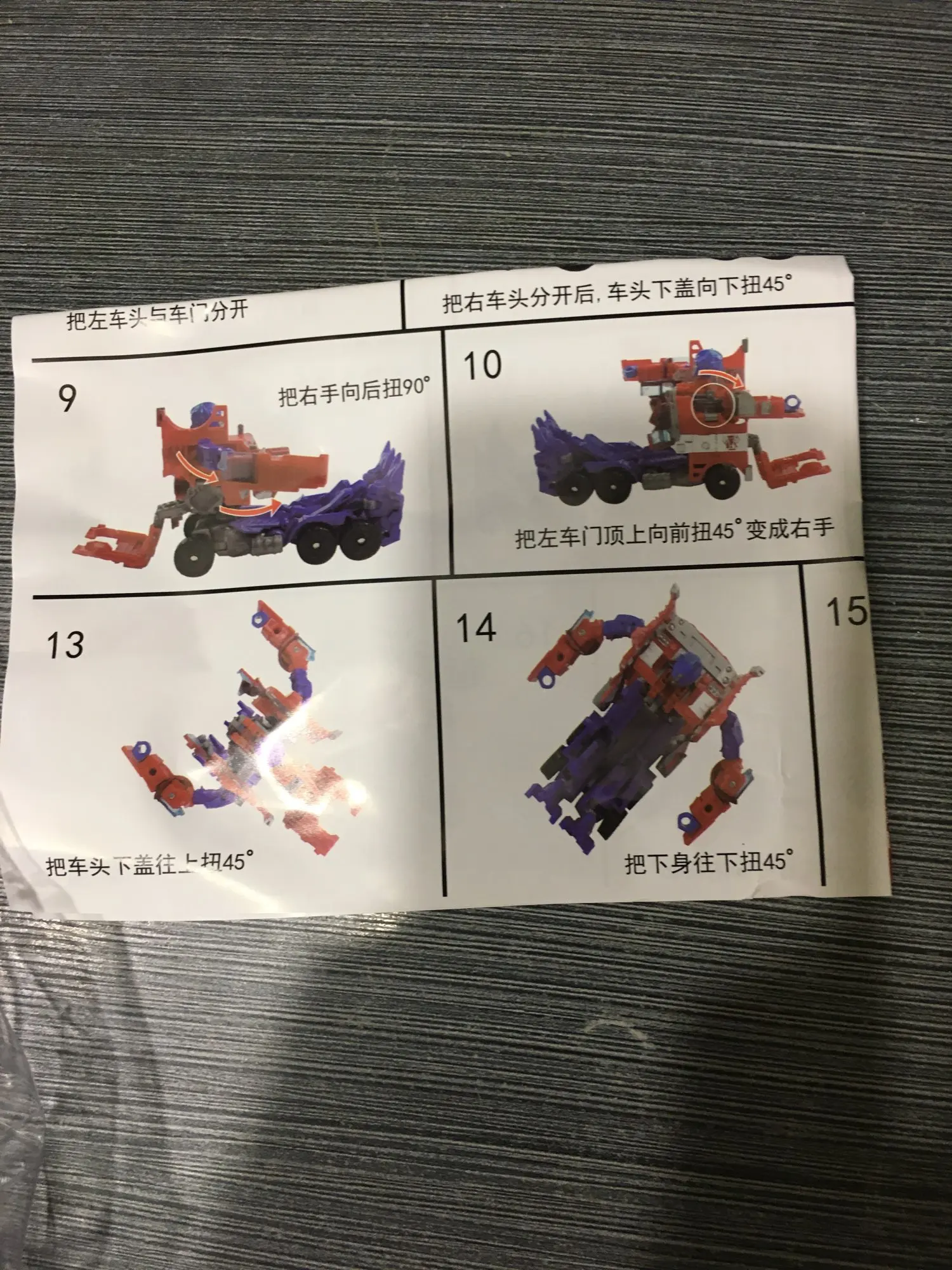 Товар пришел быстро. Пластмасса качественная. Собирается сложно, но интересно. В трансформированном виде очень хороши, не разваливаются, что особенно порадовало. Буду ещё заказывать!