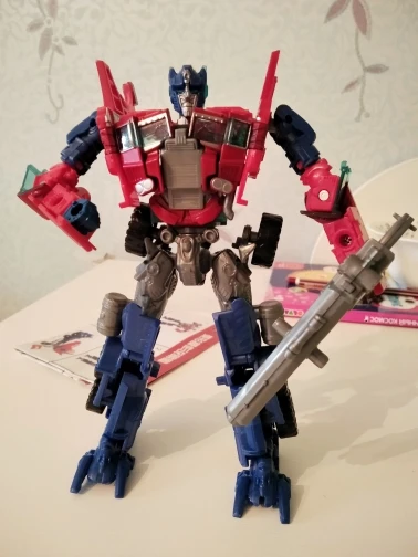 это конечно не оригинал, но сойдёт, дробовик подошёл для моего оригинального мегатрона, только вот для оптимуса этот дробовик не подходит, на рукояти для оптимуса зачем-то есть вставка, которая не даёт положить рукоять в руку оптимуса, в общем, держать он его не может