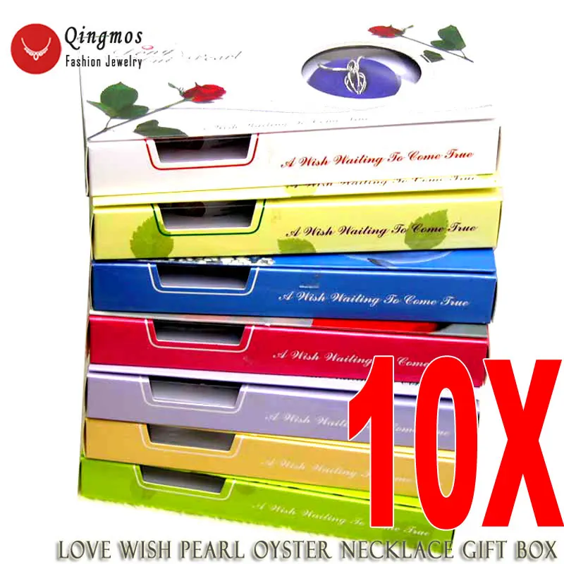 Подарок на Рождество, оптовая продажа, 10 коробок, подвеска в виде сердца, жемчужное ожерелье с желанием, true-who3621