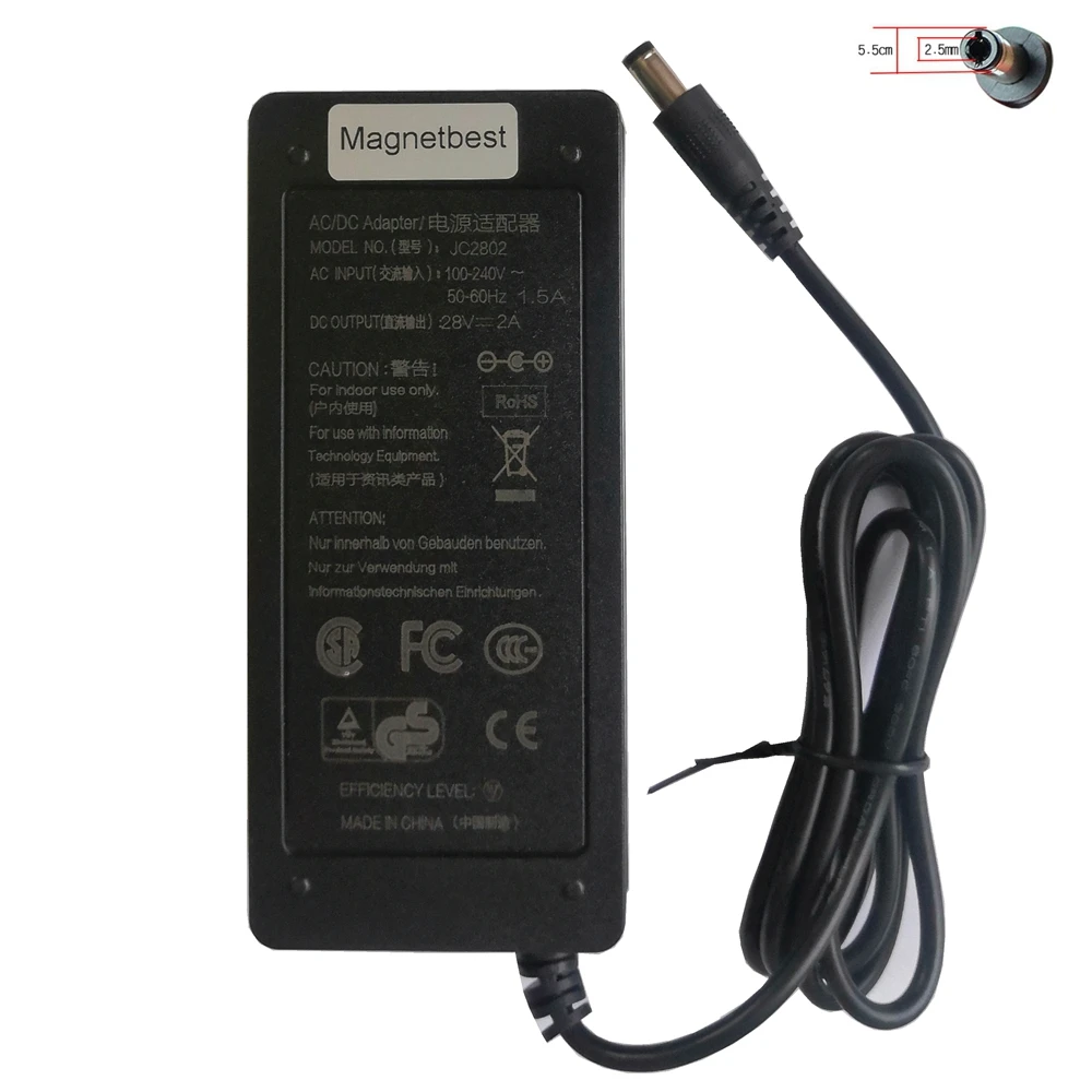 Высококачественный адаптер переменного и постоянного тока 28 в, 2 А, зарядное устройство 28 в, 2 А, 56 Вт, переключатель питания, адаптер постоянного тока 5,5*2,52,1 мм