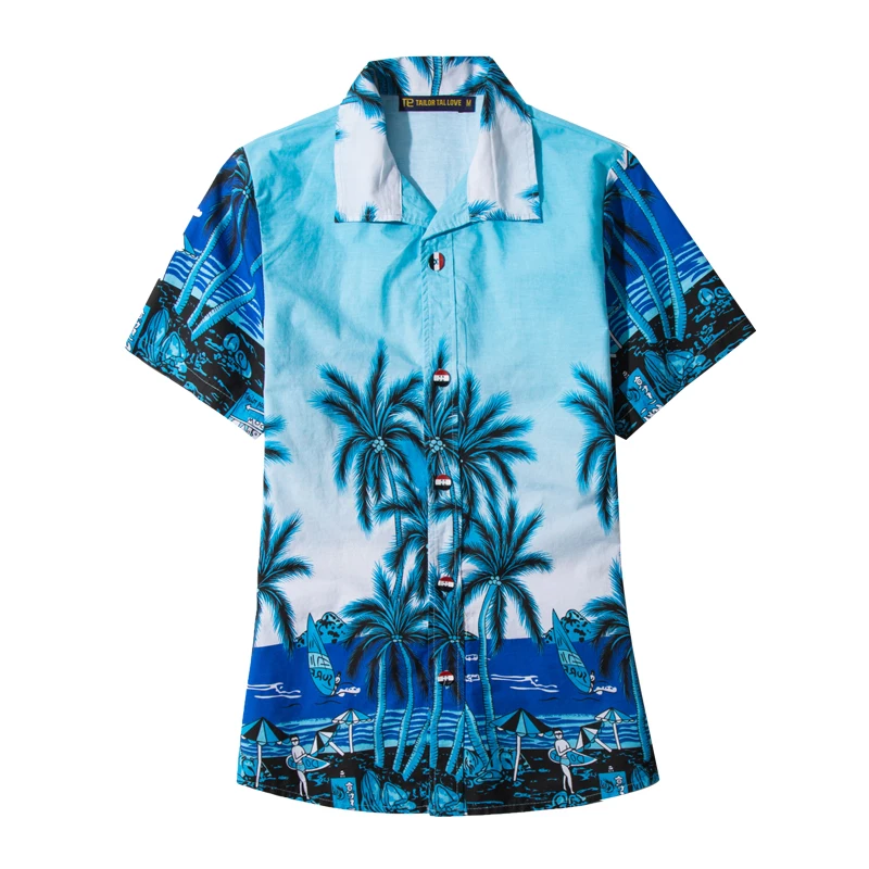 Мужская гавайская рубашка, повседневная мужская пляжная рубашка с принтом, брендовая одежда с короткими рукавами, 100% хлопок, свободные рубашки # B1