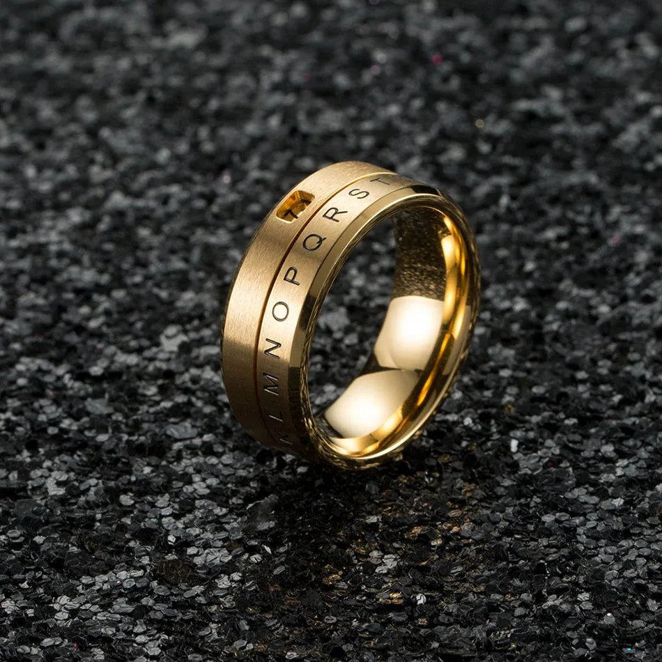 Классическое золотистое черное кольцо Liumo с зернистой буквой, мужское кольцо из вечерние стали Lr498