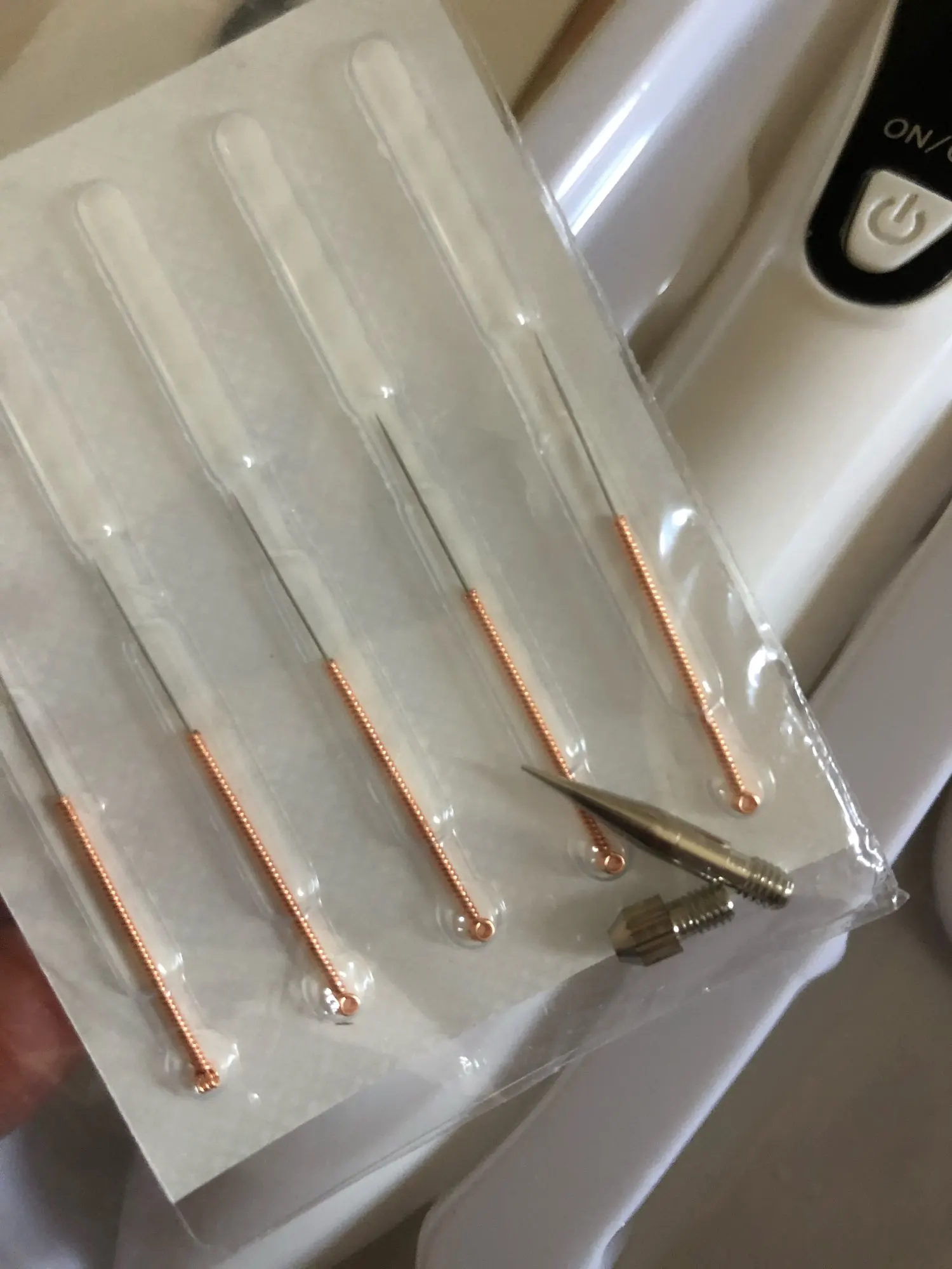 Более 3-х месяцев шёл заказ, сначала застрял в Китае, связалась с продавцом и переоформили заказа, потом из Китая в Екатеринбург, затем во Львов и потом в Ростов на Дону....)))) я уже не надеялась, что заказ вообще прилёт. Сама ручка хорошая и мощная. Для удаления маленьких папиллом достаточно режима 1, для бородавки 3 достаточно. В комплекте 10 иголок и три насадки для большой площади обработки