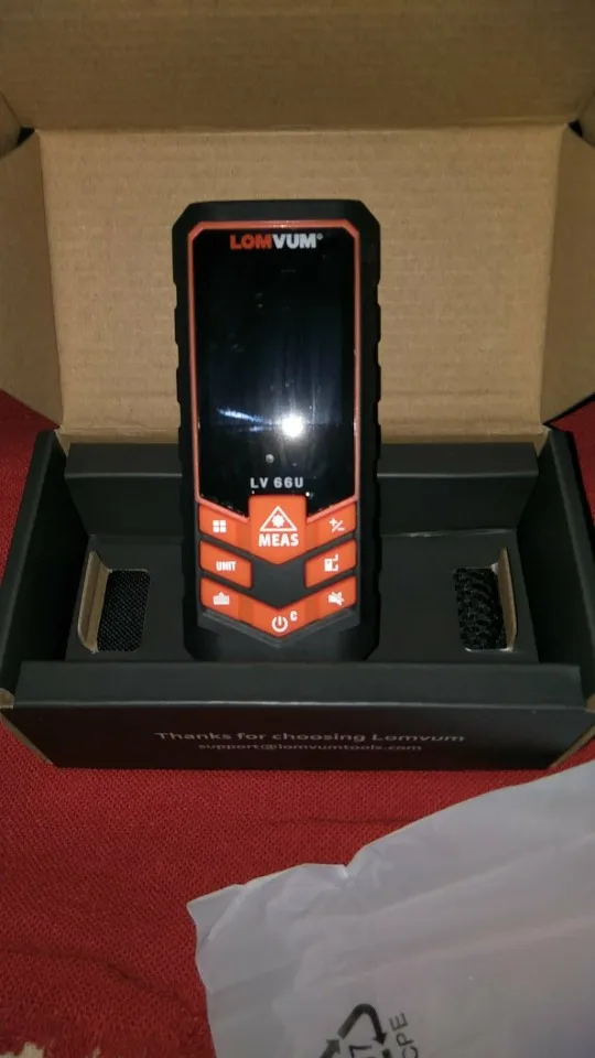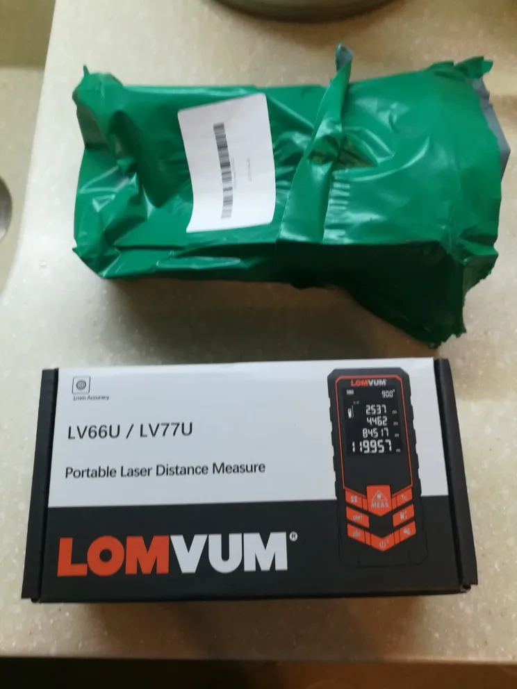 Заказ был доставлен до двери в Москве за 5 дней (конечно же, из России :). Трекался со следующего - после заказа - дня. Коробка твёрдая, хорошая. Приборчик выглядит добротно. Минимальная измеряемая длина = 45мм. Максималку (60м) пока проверить не получилось. Показывает всё, что надо, даже угол измерения, так что, им можно пользоваться вместо цифрового уровня/угломера. Судя по виду прибора и функциям, фирма обстоятельная, буду брать и другие приборы фирмы LOMVUM, т.к. соотношение цена/качество очень устраивает. Продавец хороший, отдал команду на отгрузку в Россию на следующий день (в Китае +6 часов от Московского времени, а я заказывал днём). Надеюсь, что прибор прослужит долго.