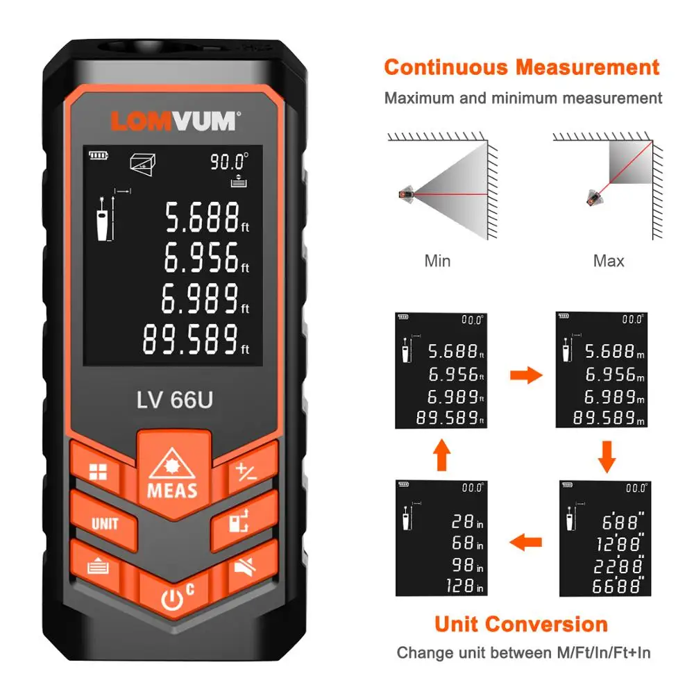 LOMVUM 66U лазерный дальномер лазерный дальномер цифровой лазерный ленточный нивелир 80 м 120 м линейка построить измерительное устройство Trena Laser