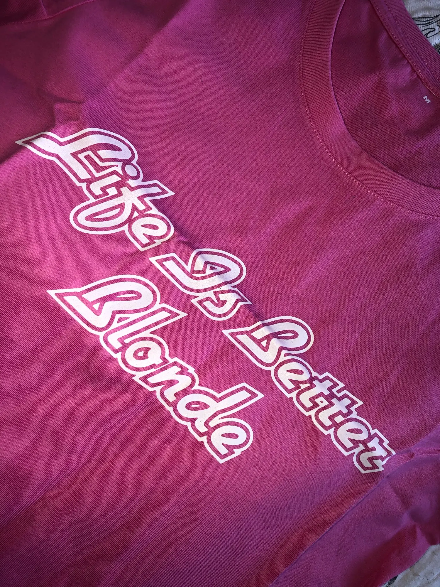 I wanted a pink shirt I got light purple. Sucks! Arrived very fast though