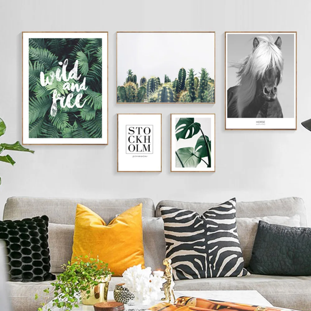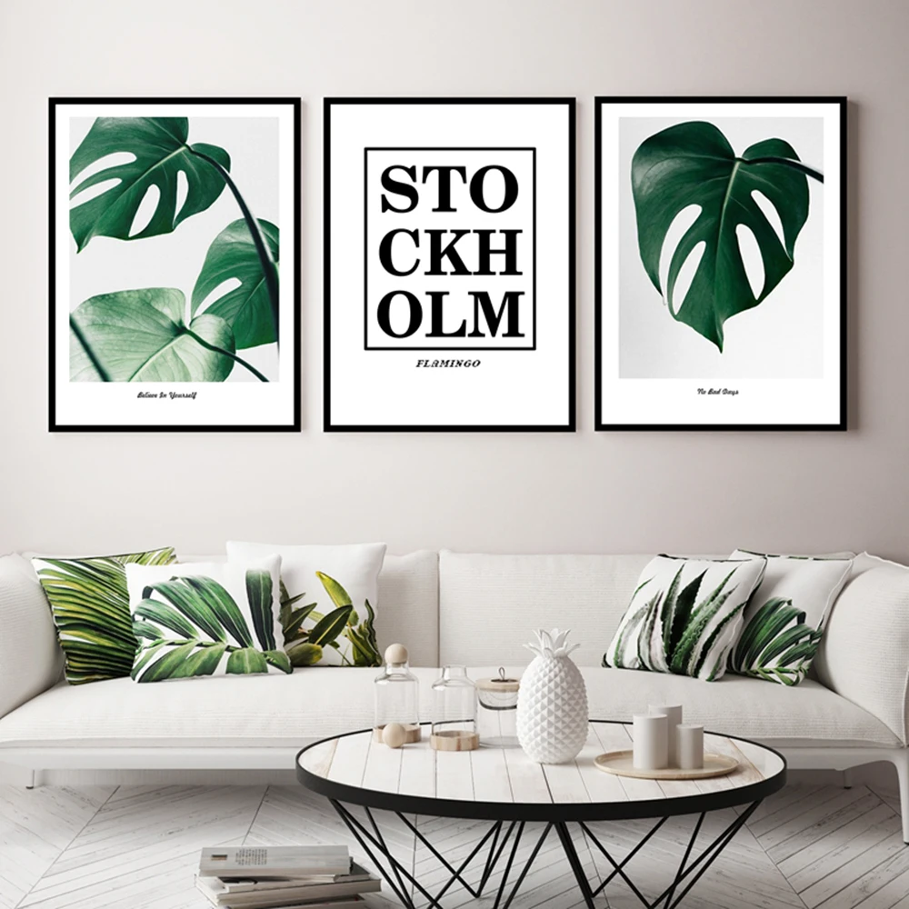 Декор для дома в скандинавском стиле, постер с зелеными листьями и растениями, картина С КАКТУСОМ, Настенная картина, печать на холсте