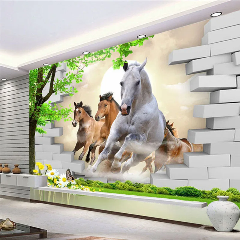 Индивидуальная фотообои 3D стерео лошадь сломанная настенная кирпичная настенная бумага Гостиная ТВ фон настенная живопись 3D домашний декор