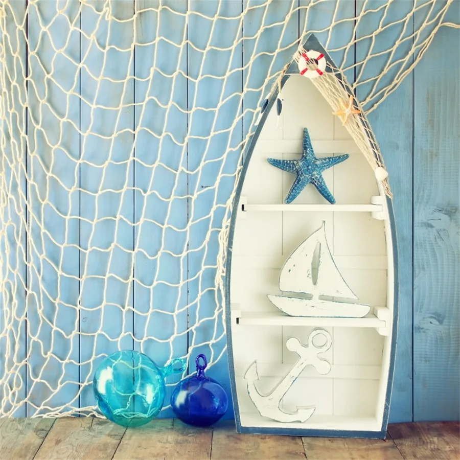 Laeacco летние фоны для сёрфинга корабля в сеточку Морская звезда якорь деревянный пол детский портрет фотографический фон для фотостудии