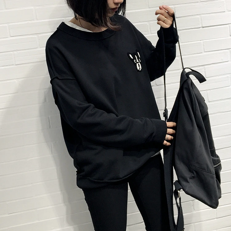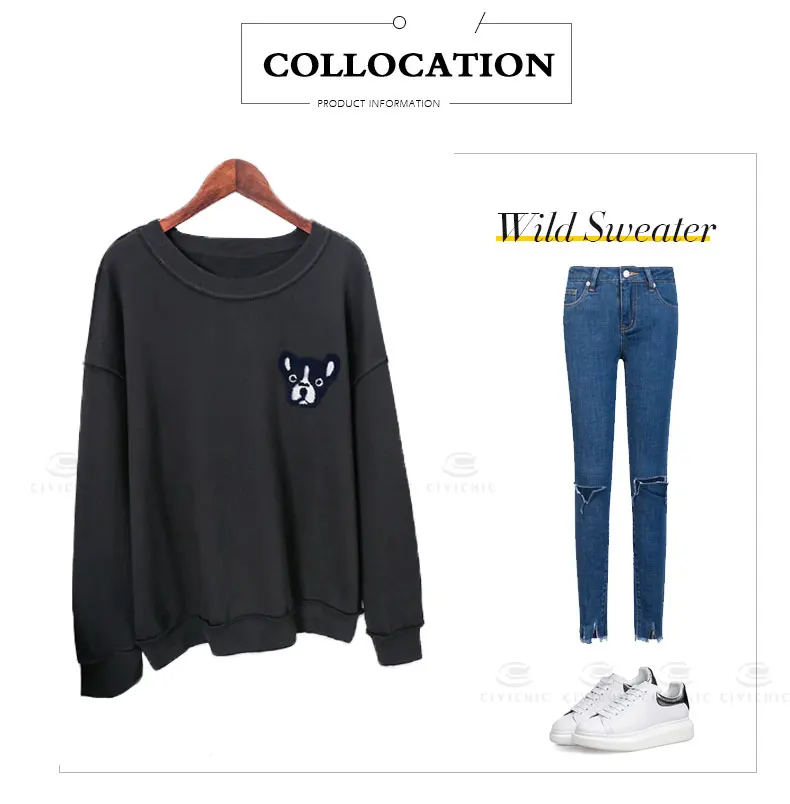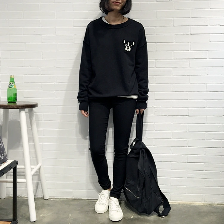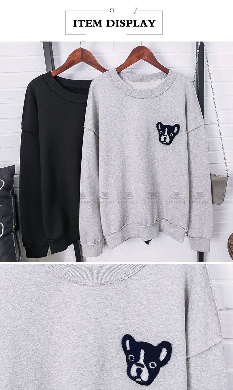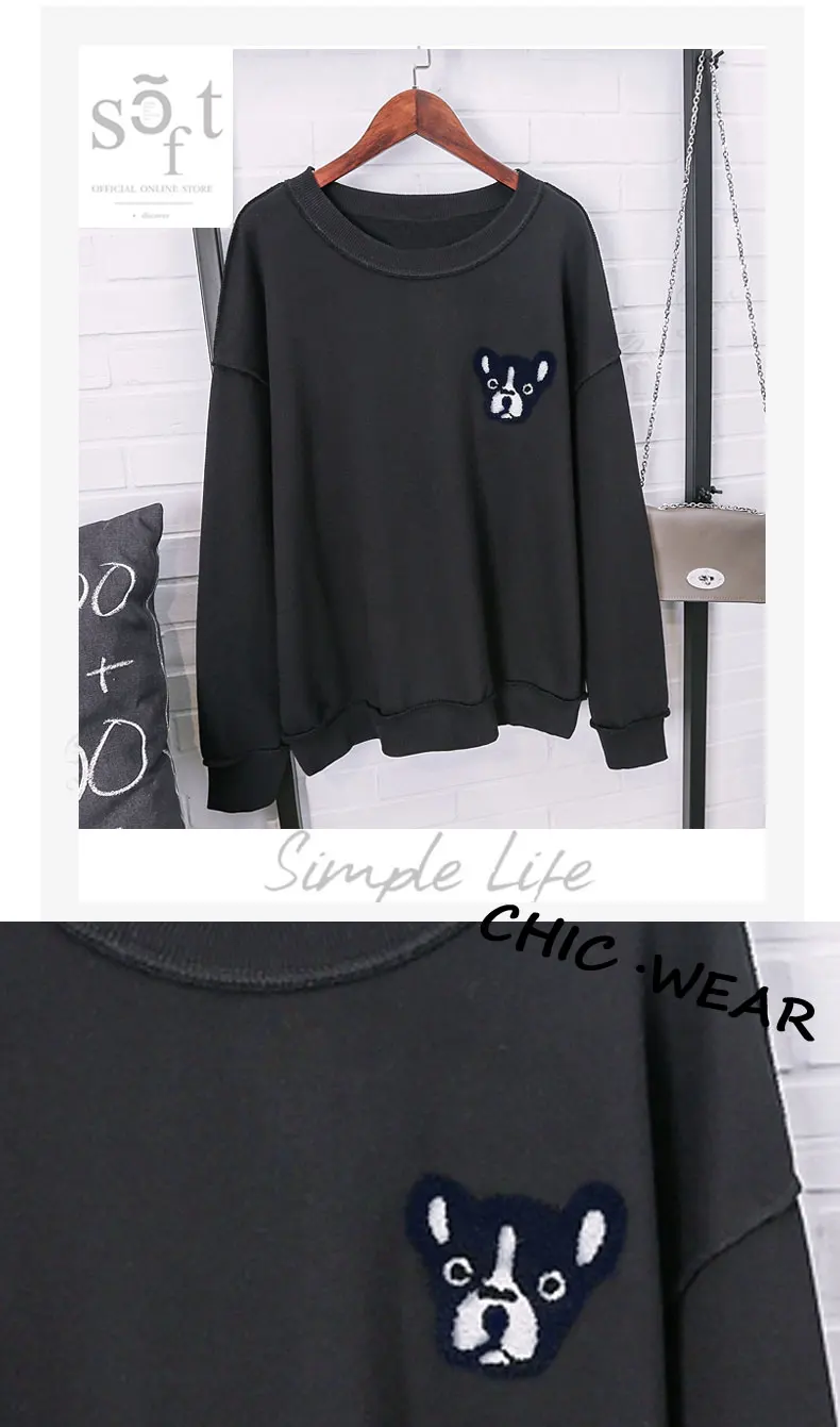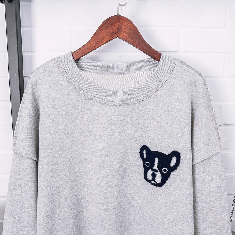 Шикарная стильная Женская толстовка с вышивкой в виде щенка, пуловеры в виде бульдога, хлопковые топы в стиле ретро, винтажная свободная толстовка, футболки для собак, одежда WHD20