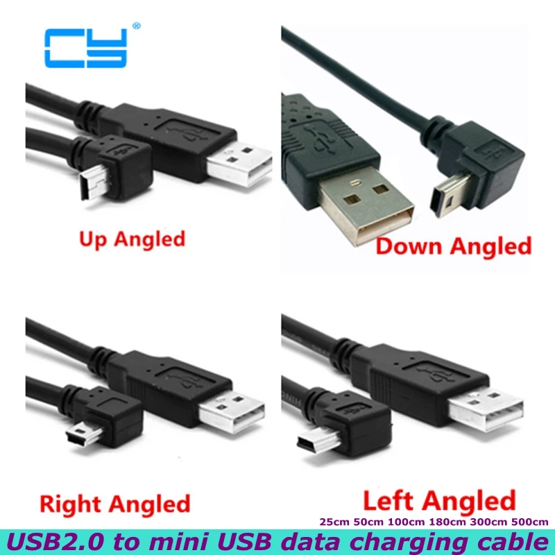 5 м USB 2,0 штекер-мини USB Тип B 5-контактный 90 градусов вверх, вниз, левый и правый угол кабель для передачи данных подходит для MP3 MP4