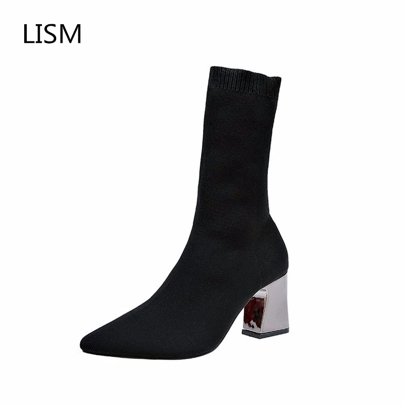 Женские черные ботильоны-носки 2019, модные весенне-Осенние эластич...